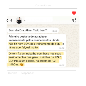 Hoje, também se dedica à formar profissionais completos para as áreas tributária e fiscal, através de conteúdos diários nas redes sociais, cursos e mentorias.