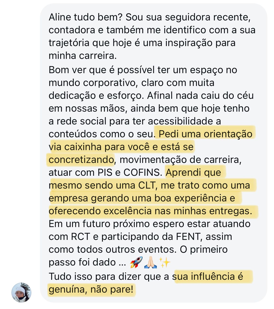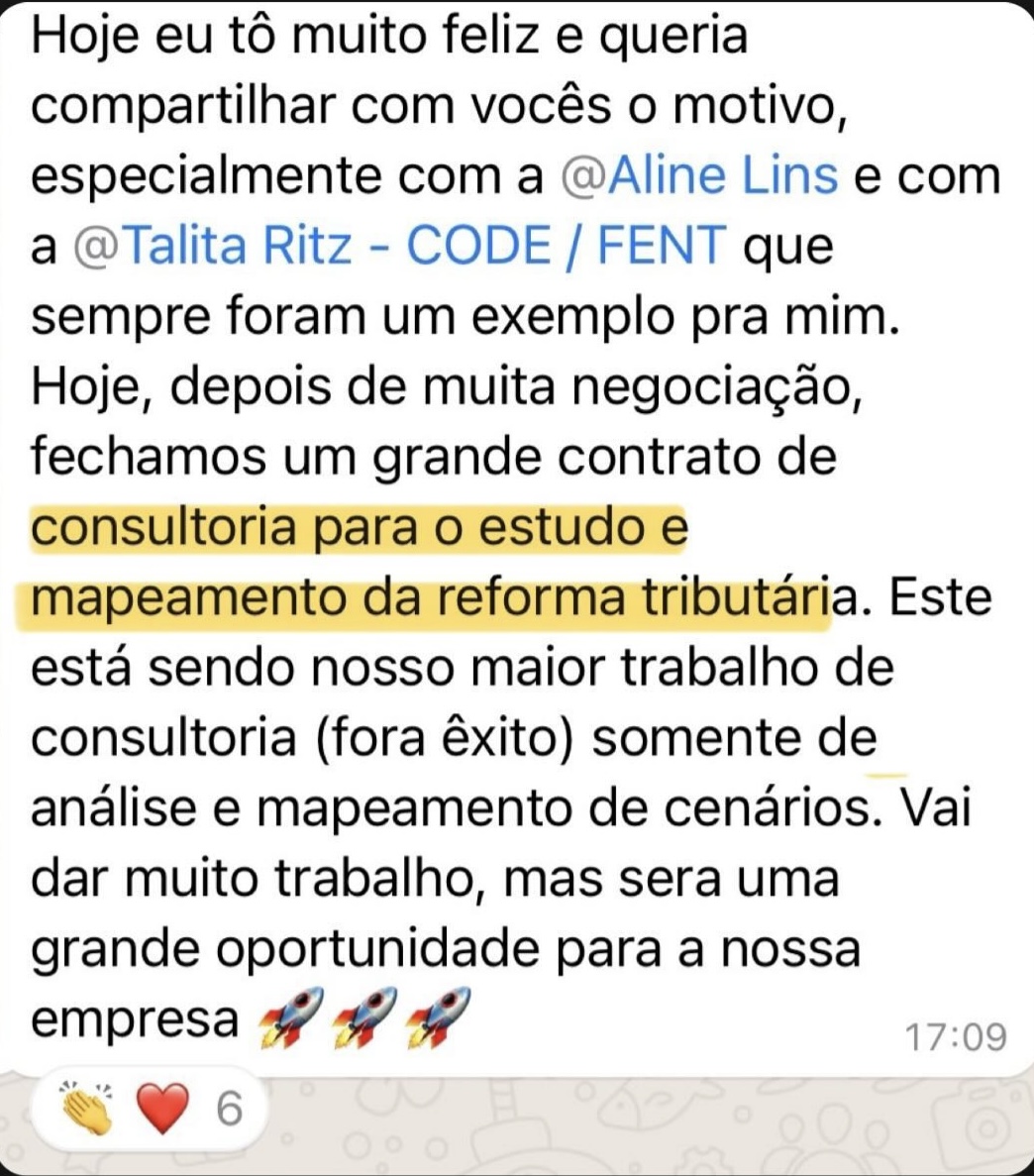 Hoje, também se dedica à formar profissionais completos para as áreas tributária e fiscal, através de conteúdos diários nas redes sociais, cursos e mentorias.